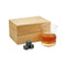 tres enfriadores de piedra y estuche de madera.